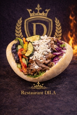 Kebab, cornichon, aubergines, courgettes, feta